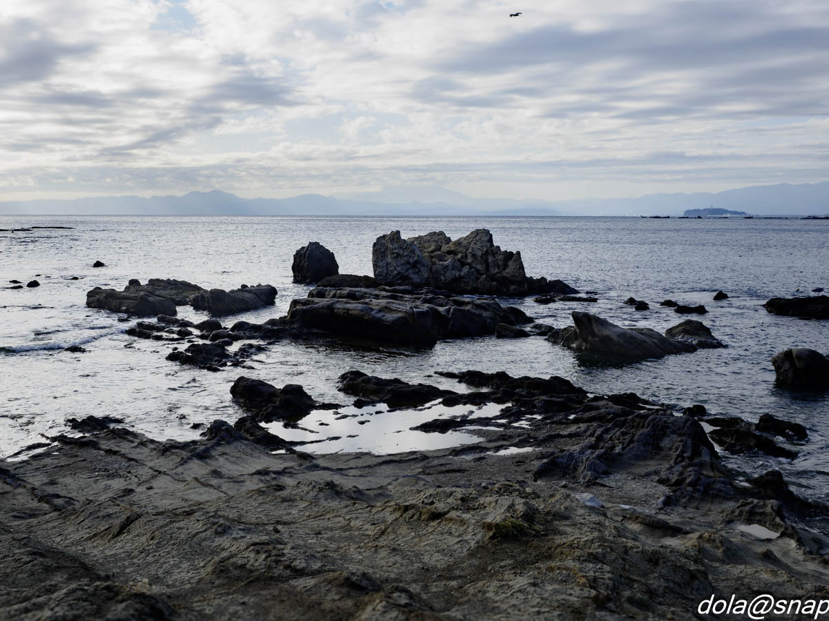 ”小磯の鼻”の岩場。この日は波が静かでしたが、すす~っと岩の裂け目に入る海水の動きは見飽きません。