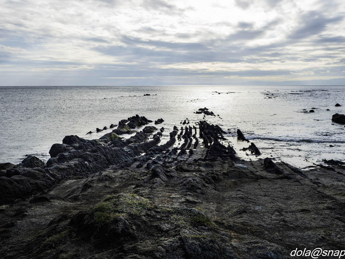 ”小磯の鼻”の岩場。洗濯板というのかな。龍の背中のようでもあり、かっこいい!!